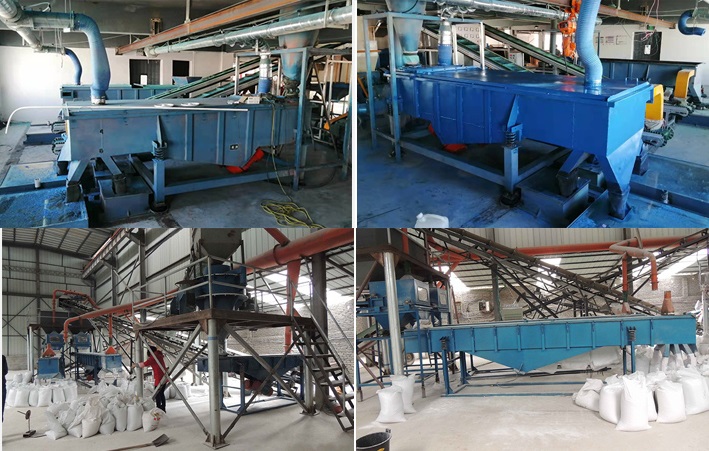 塑料顆粒通過(guò)輸送帶進(jìn)入多層直線篩設(shè)備,由于電機(jī)激振力和自身重力的雙重作用,塑料顆粒沿直線篩面直線跳躍,上層塑料顆粒在上排料口被篩出,而小于篩網(wǎng)目數(shù)的塑料顆粒進(jìn)入下部篩網(wǎng),仍沿同一物料運(yùn)動(dòng)軌跡。經(jīng)過(guò)三層篩網(wǎng)后,塑料顆粒分為大于2.5mm塑料顆粒、2.5mm-1.4mm塑料顆粒、1.4mm-80目塑料顆粒、小于80目塑料顆粒等四種規(guī)格的材料,還可根據(jù)要求選擇6層不通目數(shù)的篩網(wǎng),以實(shí)現(xiàn)要求的分級(jí)效果。