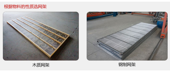 3,該產(chǎn)品可更換多種網(wǎng)架,木質(zhì)網(wǎng)架,鋼制網(wǎng)架等根據(jù)物料的性質(zhì)進(jìn)行選擇。